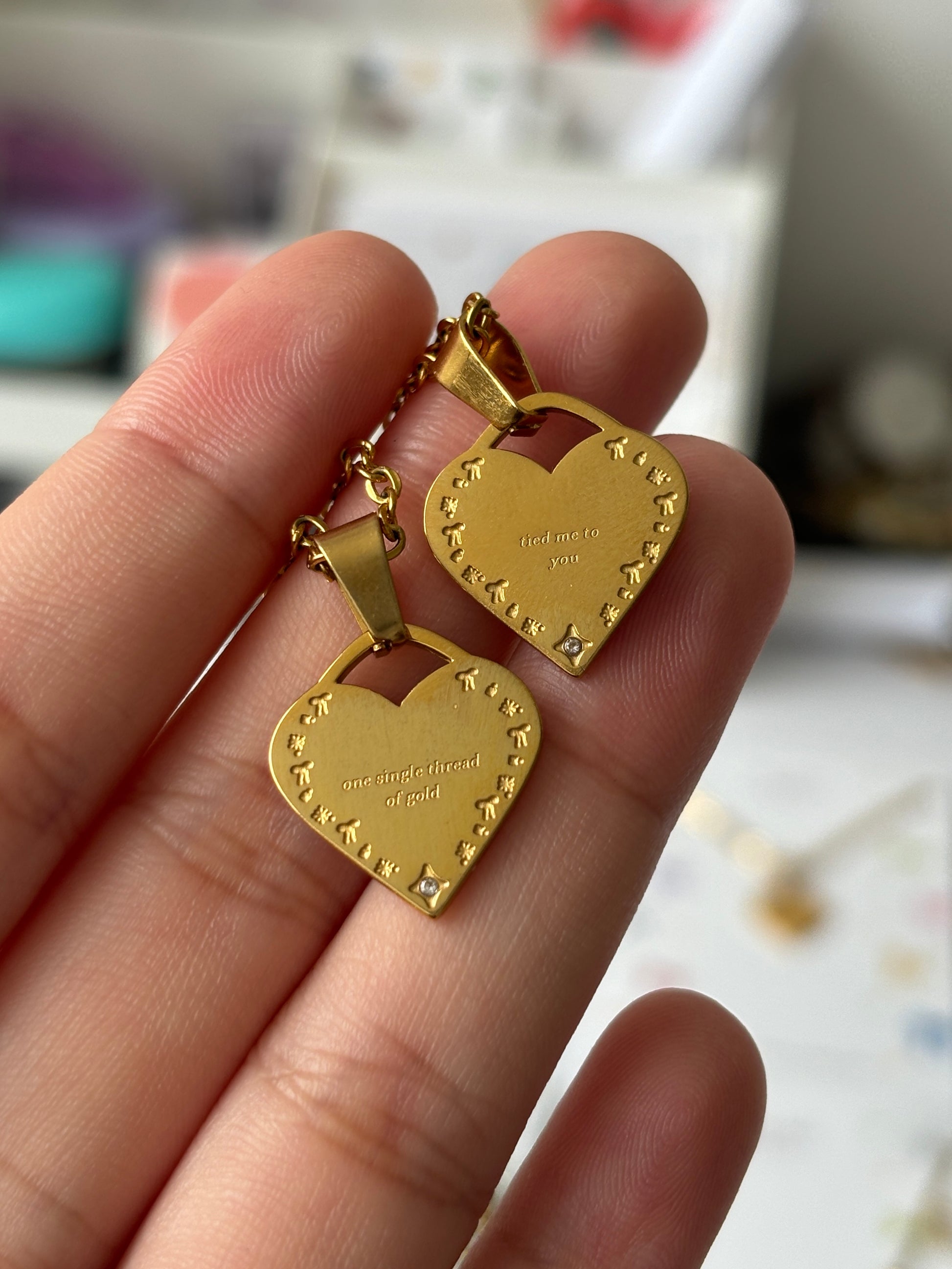 You will receive two necklaces: ‘one single thread of gold’ and ‘tied me to you’